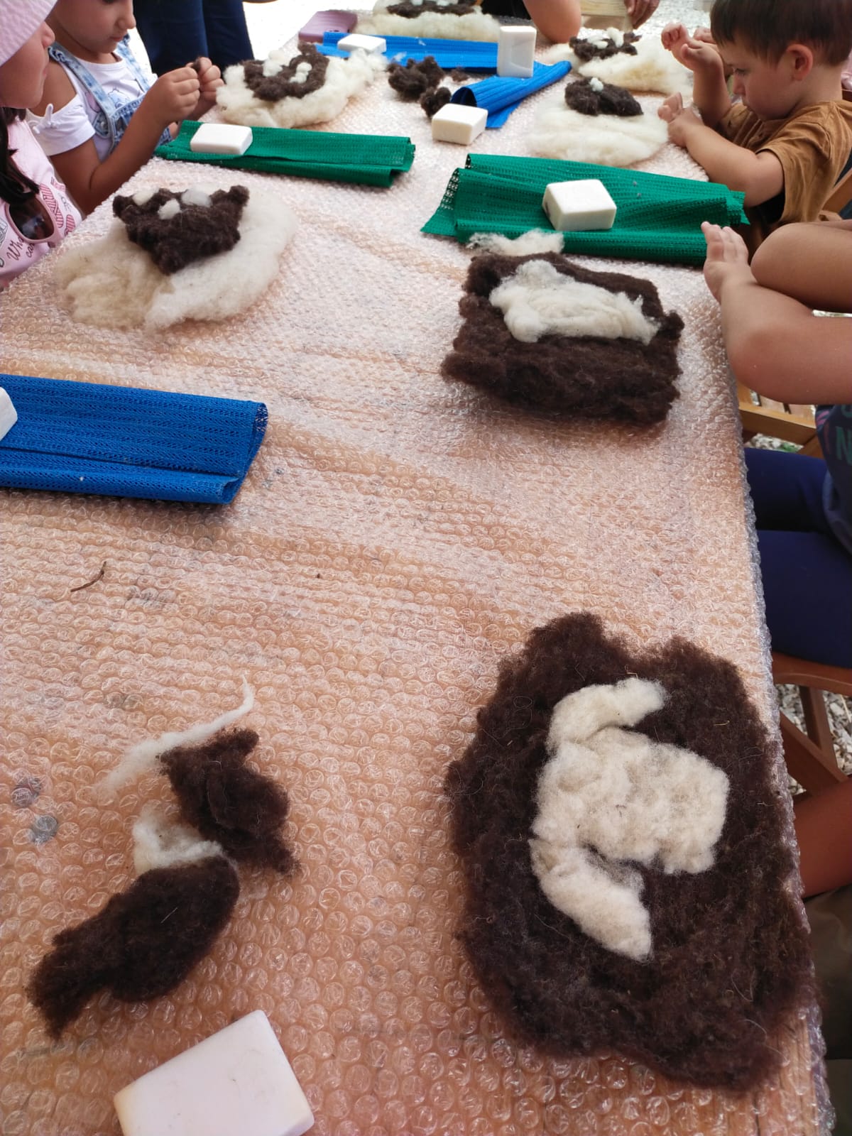 Per i bambini delle scuole materne proponiamo delle giornate di laboratorio con un’introduzione alla lana, alla sua storia e a come ne è cambiata la produzione negli anni. In questo modo si unisce un’esperienza pratica con l’acquisizione di importanti nozioni su cos’è importante sapere riguardo ai prodotti che acquistiamo.